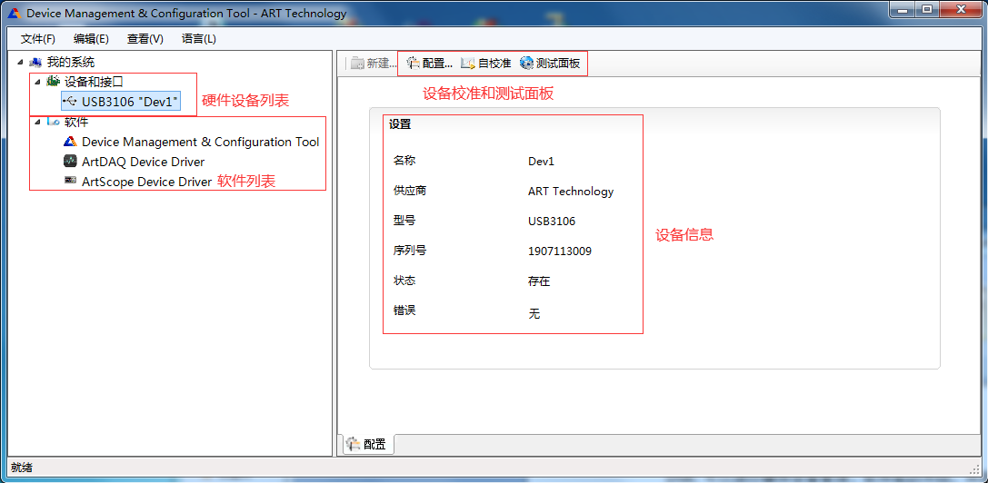 2. 在DMC中,可以實(shí)現(xiàn)設(shè)備識(shí)別、屬性配置、板卡自校準(zhǔn)等功能,并且提供了專業(yè)的測(cè)試面板,用于快速演示板卡功能。