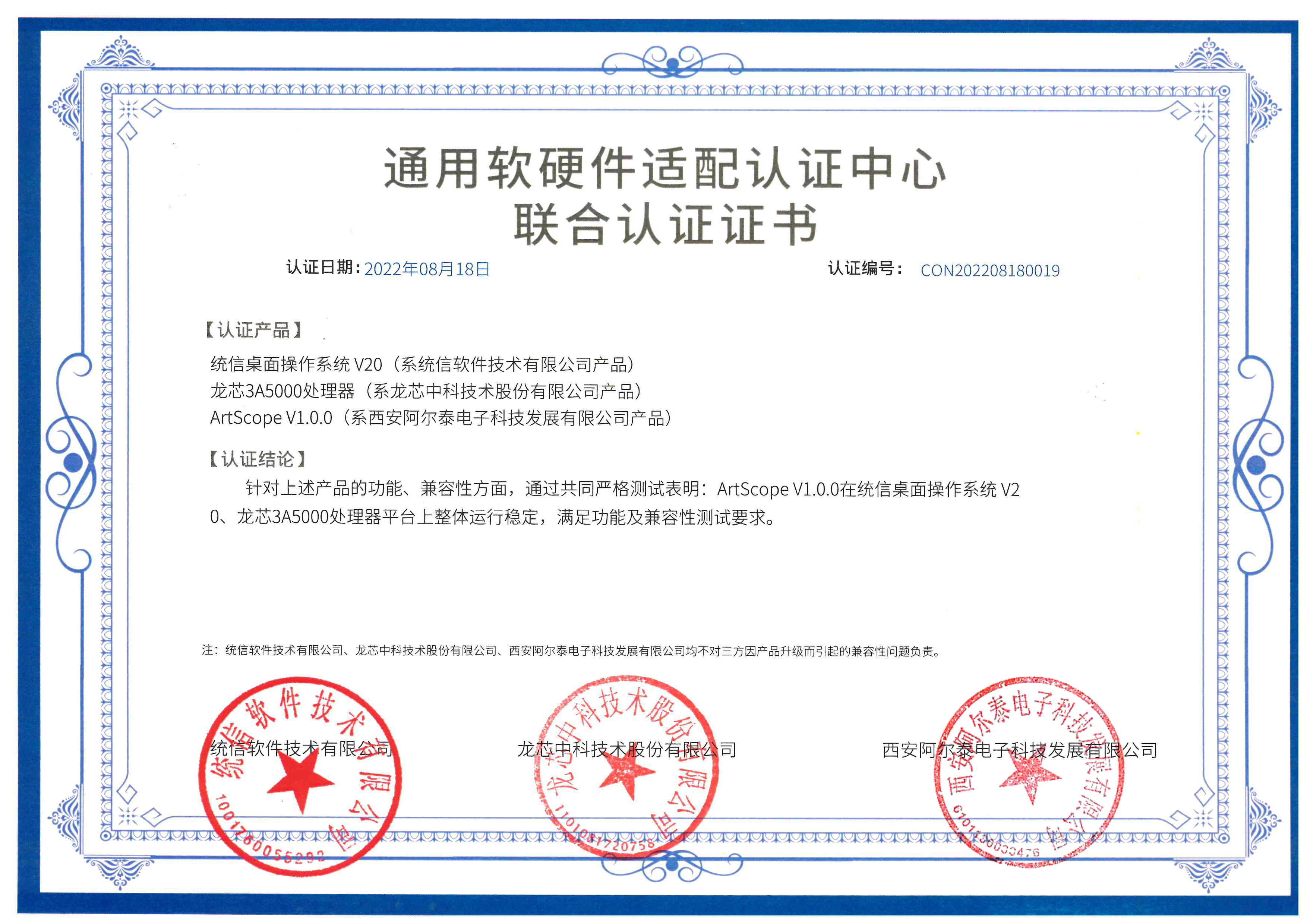 自主CPU能否長遠(yuǎn)發(fā)展,取決于中國的CPU是否擁有自主指令集系統(tǒng);“龍架構(gòu)”3A5000處理器的工業(yè)生態(tài)圈的建設(shè),標(biāo)志著中國工業(yè)的系統(tǒng)安全進(jìn)入堅實的發(fā)展階段。阿爾泰科技的Art-Scope虛擬儀器開發(fā)平臺,業(yè)內(nèi)率先適配龍芯3A5000控制器和統(tǒng)信UOS操作系統(tǒng),已通過三方互認(rèn)證測試,取得“通用軟硬件適配聯(lián)合認(rèn)證證書”。